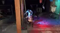In a dark, dimly lit room filled with the smell of old leather and BDSM equipment, two women, one blonde and the other brunette, eagerly await their turn at the gloryhole.They are both wearing tight leather outfits strapped around their bodies, accentuating every curve.The threesome is about to begin, as they all share a mutual kinky fetish for swapping sperm and completing in cum swapping.As the blonde slides down on her knees, her eyes widen with desire, while her tongue is ready to receive the first load of cum from the hidden gloryhole.The brunette watches intently, jealous yet excited, as she starts undressing herself.She knows her turn will come soon enough.The blondes face is covered in saliva and anticipation as she starts to suck on the hidden cock.She can sense the urgency building up within him as his orgasm approaches, her tongue teasing every last drop out of him.The moans from behind the wall grow louder, the brunette hearing it all too clearly.The brunettes heart is pounding with excitement and arousal.She knows that in just a moment, she will taste her first load.As she reaches for the chains, mask, spikes, and tie nearby, she ties herself up against a post to better focus on the upcoming blowjobs.Her mouth opens wide as the first spray of sperm gushes onto her tongue, and it is then that the blondes role ends.The brunette now takes over the position, her tongue working in harmony with her friend as they both swap cum between their eager mouths.As the two women continue to enjoy their mutual blowjob session at the gloryhole, another hidden man watches through a peephole, stroking his own cock and ready to join the threesome.He jerks off furiously, envisioning himself taking turns with both blonde and brunette.Their moans and groans of pleasure mix together into an erotic symphony that fills the room.Suddenly, he can no longer contain his lust.With a burst of passion, he spurts his cum on their faces, joining the sea of sperm that is being shared between them.The brunette and blonde catch each others eyes, and with one final exhale, they release every last drop in an orgy of cumswapping ecstasy.